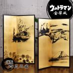 全国送料無料四尺二曲金屏風(縁あり)「ウルトラマン富士山」「ウルトラセブン松竹梅」水墨画アートに 本格ウルトラ屏風 大湊文吉商店 モダン 送料無料