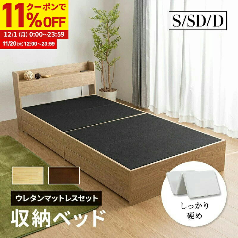 【11%OFFクーポン配布中★12/1に使える】 収納ベッド ベッド 収納付き シングル セミダブル ダブル マットレス付き ウレタンマットレス ベッドフレーム コンセント付き 引き出し付き ヘッドボード 宮棚 宮付き 収納ベッド 木製ベッド 北欧風