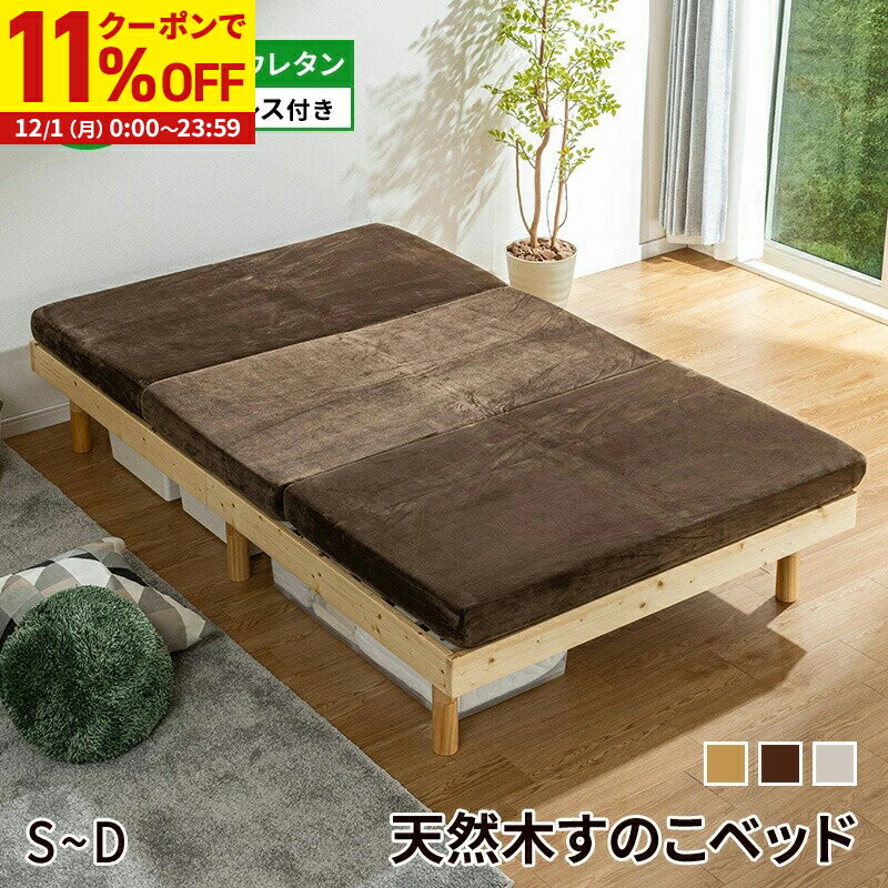 【11%OFFクーポン配布中★12/1に使える】 すのこベッド ベッド マットレス付き ウレタンマットレス マットレスセット 高反発 三つ折り セミシングルショート セミシングル シングル セミダブル ダブル クイーン ベッドフレーム すのこ 北欧風 おしゃれ