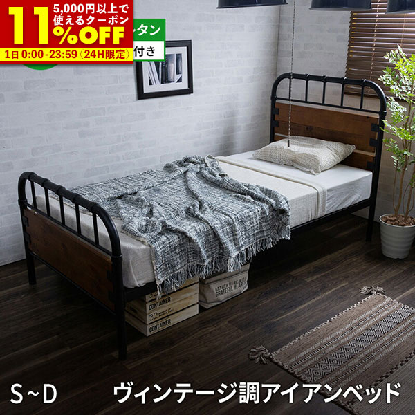 【クーポンで11%OFF★12/1 0:00〜23:59】 パイプベッド マットレス付き ベッド 2段階高さ調整 ヴィンテージ調 ウレタンマットレス アイアンベッド シングル セミダブル ダブル ヴィンテージ風ベッド アンティーク調ベッド ベット 木製ベッド