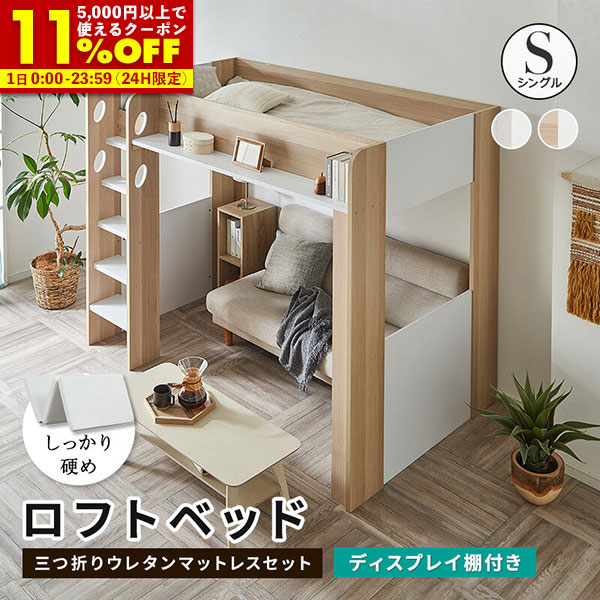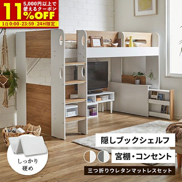 【11%OFFクーポン配布中★12/1に使える】 ロフトベッド ロフト 二段ベッド 2段ベッド システムベッド システムベット ベッド マットレス付き ウレタンマットレス マットレスセット 高反発 三つ折り 3つ折り 一人暮らし 子供部屋 新生活 学習机 学習