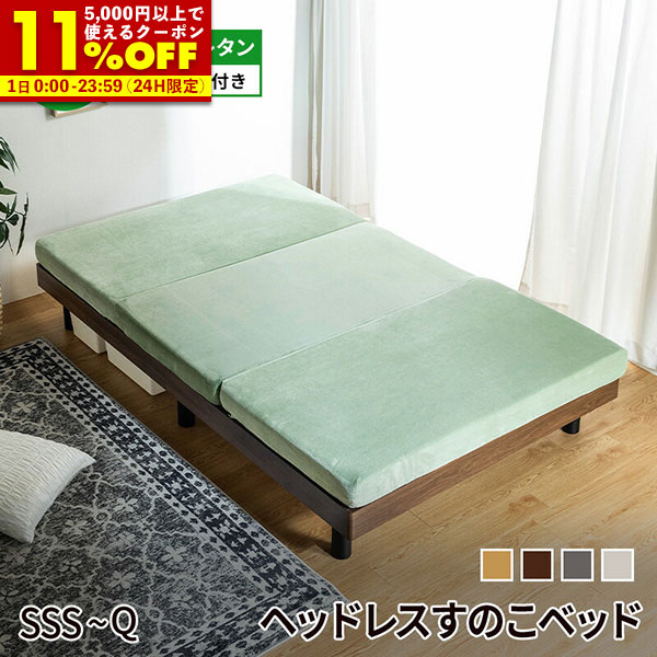 【クーポンで11%OFF★12/1 0:00〜23:59】 すのこベッド ベッド マットレス付き シングル セミダブル ダブル セミシングル ベット ウレタンマットレス マットレスセット 高反発 三つ折り 3つ折り 厚さ10cm ベッドフレーム すのこ ヘッドレス シンプル 北欧風 おしゃれ