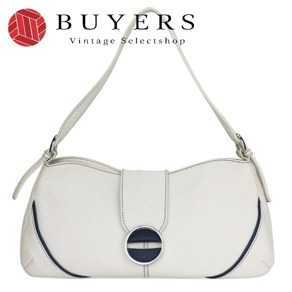 【10%OFF!!楽天スーパーSALE!!】【中古】 ウンガロ ショルダーバッグ レザー ホワイト ネイビー シルバー金具 ワンショルダー カジュアル レディース 女性 emanuel ungaro