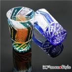 ペア 江戸切子 クリスタル タンブラー グラス kaleido scope エメラルドグリーンと瑠璃 木箱入り