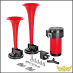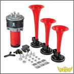 ハロウィンセール!!SEGER製 トリプル エアーホーン 3連 レッド コンプレッサー付き 12V/24V選択式