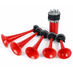 5連エアーホーン ラ・クカラチャ 12V コンプレッサー リレー付 フルセット 5連トランペット レッド 汎用 12V専用 4極リレー付属