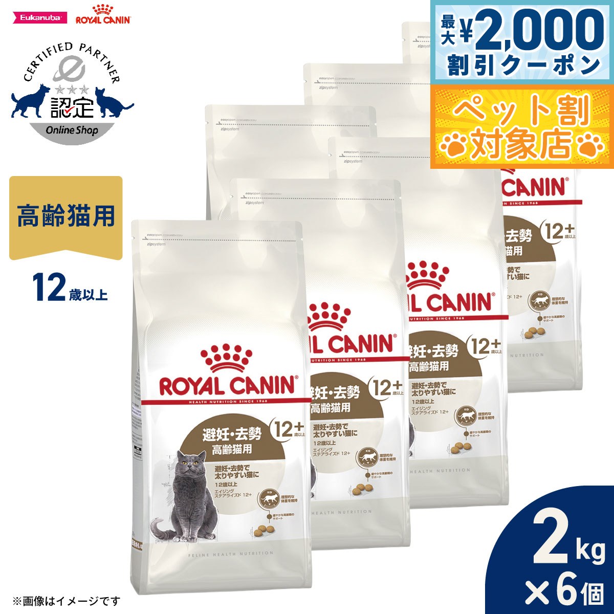 【最大2000円OFFクーポン!&店内ポイント最大60倍!本日限定!】ロイヤルカナン 猫 キャットフード フィーラインヘルスニュートリション エイジング ステアライズド 12+ 2kg×6個 正規品 避妊・去勢で太りやすい猫専用フード 高齢猫用