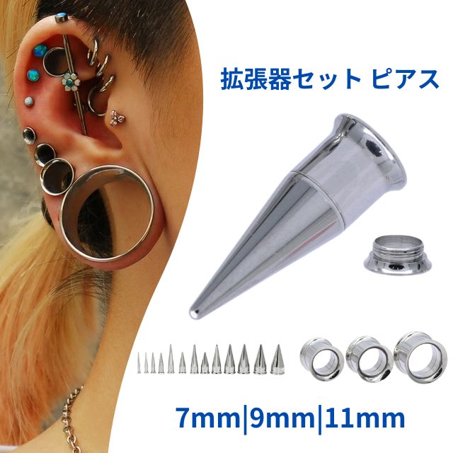 拡張器 7mm 9mm 11mm エキスパンダー インサンションテーパー トンネルSET サージカルステンレス ボディピアス 拡張ピアス