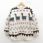 M/古着 長袖 セーター メンズ ラマ ウール クルーネック エクアドル製 生成り他 26jan13