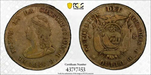 1855 GJ エクアドル シルバー 4 REALES PCGS VF-35 - キト - KM#37