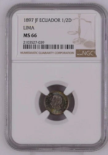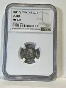 1848 キト 1/2 リアル NGC MS62+ エクアドル アッセイャー GJ シルバー コイン レア + グレード