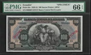 エクアドル 標本 100 スクレ 1928 - 34 PMG 66 EPQ UNC P # 88s PMG 人口 3/1