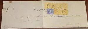 エクアドル 1873 紋章 1r オリーブイエロー。織り Sc 4a ペア グアヤキルからペルーへ