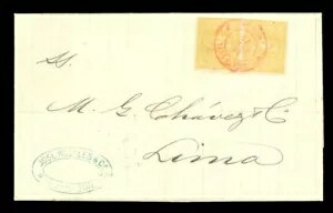 O) 1865 エクアドル、アンバト国章 1/2 レアルブルー、国章 1 レアルイエロー、B