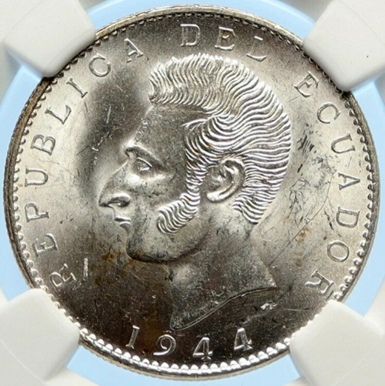 1944 Mo エクアドル アントニオ ホセ デ スクレ イ アルカラ シルバー 2 スクレ コイン NGC i97520