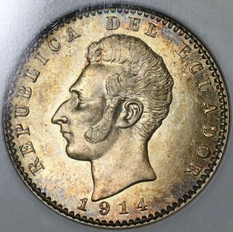 1914年 NGC MS 64 エクアドル シルバー 2デシモス フィラデルフィア (20102404C)