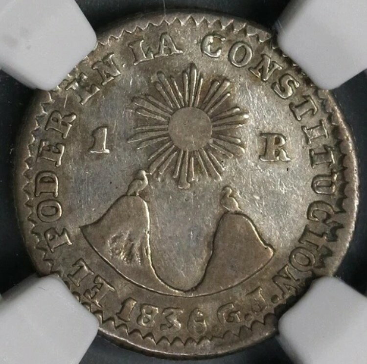 1836 GJ NGC VF 25 エクアドル 1レアル レア キト シルバーコイン POP 1/1 (19030902C)