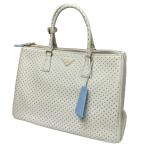 【値下げ】PRADA ガレリア エクストララージ スタッズ付 ソフトグレインレザー バッグ ホワイト (渋谷神南店)