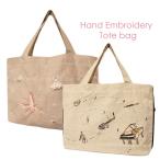 トートバッグ レッスンバッグ リネン 手刺繍 A4 マチ付 レディー ス キッズ Zenma
