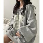 パーカー カレッジロゴ風ハーフジップビックシルエットパーカー レディース