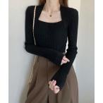 ニット セーター フロントレースアップスクエアネックトップス レディース