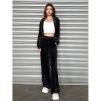 エゴイスト EGOIST 脇レースベロアストレートパンツ (BLACK)