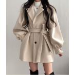 コート アウター ボリュームスリーブミドル丈コート 共布ベルト付き レディース