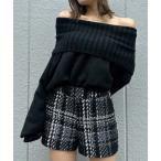 ニット セーター 2点セットアップオフショルダーニットセーター&ニットショートパンツ レディース