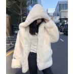 ブルゾン アウター フェイクファーフード付き中綿ブルゾン レディース