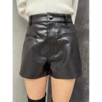 パンツ デザインポケットフェイクレザーショートパンツ レディース