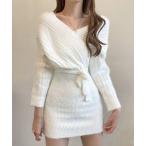 ワンピース カシュクールVネックオフショルニットミニワンピース
