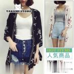 刺繍エスニックガウンカーディガンフレアスリーブ雪の結晶柄カーデ裾レース羽織りレディースUV対策夏2017春新作