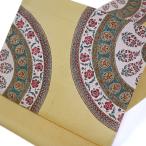 しょうざん 染描九寸名古屋帯 ソフトイエロー ペルシャ 更紗 花柄 エスニック 生紬 しゃれなごや帯