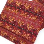 しょうざん 染描九寸名古屋帯 レッド イカット エスニック 全通 生紬 しゃれ九寸なごや帯