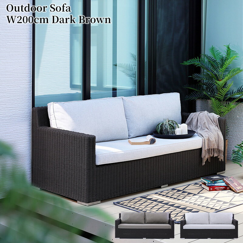 【開梱設置無料】 アウトドアソファ ガーデンソファ ダークブラウン 幅200 屋外 3Pソファ 3人掛け PP(ポリプロピレン)ロープ ソファー ガーデン 庭 テラス ベランダ アジアン エスニック D5120RD