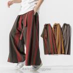 バギーパンツ メンズ エスニック タイパンツ ボトムス フレア裾 ルーズ ゆったり ストライプ 秋服 秋物