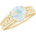 【並行輸入品】[Rosec Jewels] 2 CTエチオピアオパールソリティアケルティックバンドリングモイサナイト、AAA品質 14Kイエローゴー