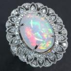 エチオピアオパール 5.21カラット ダイヤモンド 0.57カラット PT950 プラチナ950 リング・指輪 絶品 家宝級 多彩な色斑 1点もの /送料無料