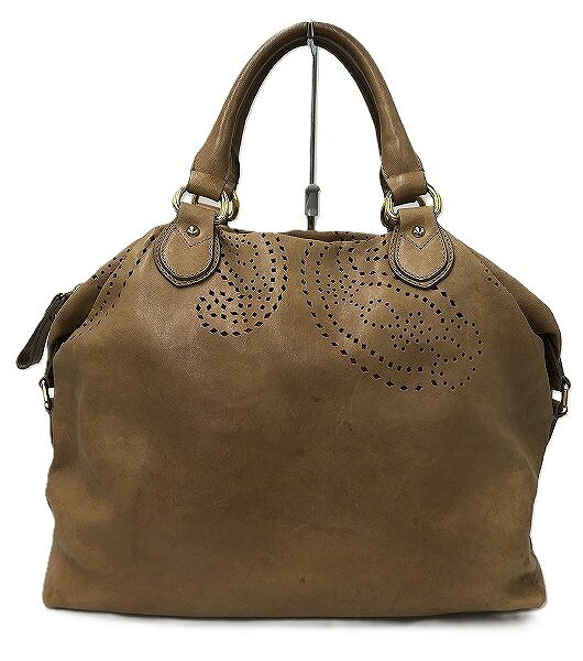 エトロ ETRO パンチングレザーハンドバッグ ブラウン 【中古】