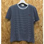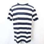 EDWIN エドウィン Mサイズ メンズ Tシャツ 半袖 丸首 クルーネック カットソー マルチボーダー柄 刺繍ロゴ ダークネイビー 濃紺