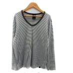 エドウィン EDWIN Tシャツ カットソー Vネック 長袖 ボーダー柄 M オフホワイト グレー /HO38 レディース