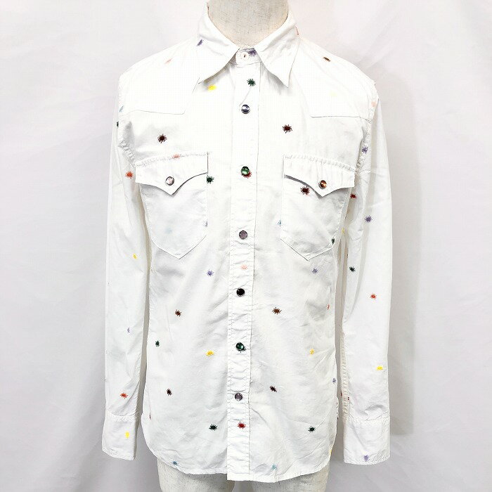 【楽天スーパーSALE限定!! \★30%OFF★/対象商品|12月4日(木)20時00分〜12月11日(木)01時59分まで】【中古】EDWIN BLUE TRIP エドウィン ブルートリップ M メンズ シャツ ウエスタン カラフルボタン 太陽刺繍柄 ドットボタン 綿100% オフホワイト 白