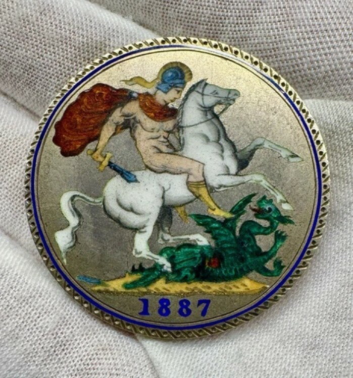 1887年 英国 ヴィクトリア シルバー クラウン エドウィン スティール エナメル ピン留め アイアピール