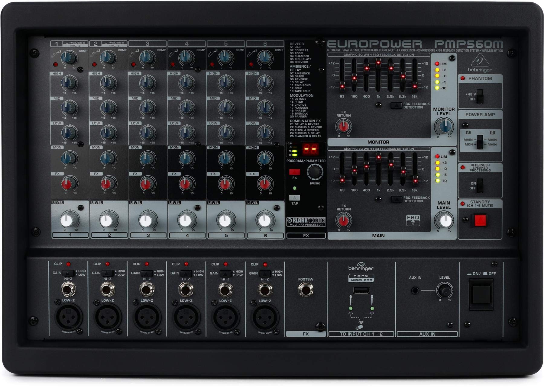 ベリンガー パワードミキサー 500W 6チャンネル エフェクター PMP560M