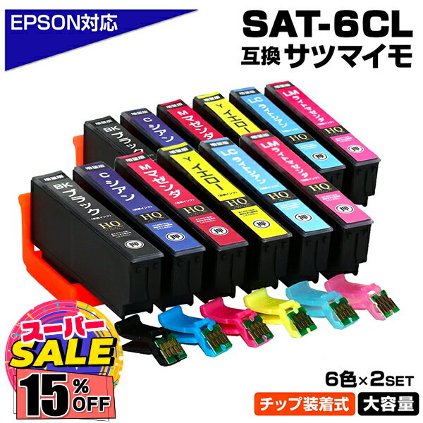 【楽天スーパーSALE★15%OFF】SAT-6CL 6色セット×2 サツマイモ ICチップ装着式 さつまいも SAT プリンターインク 増量版 互換インク エプソン EP-712A EP-713A EP-714A EP-812A EP-813A EP-814A EP-815A EP-715A 6色パック エプソン用 epson SAT-6CL×2