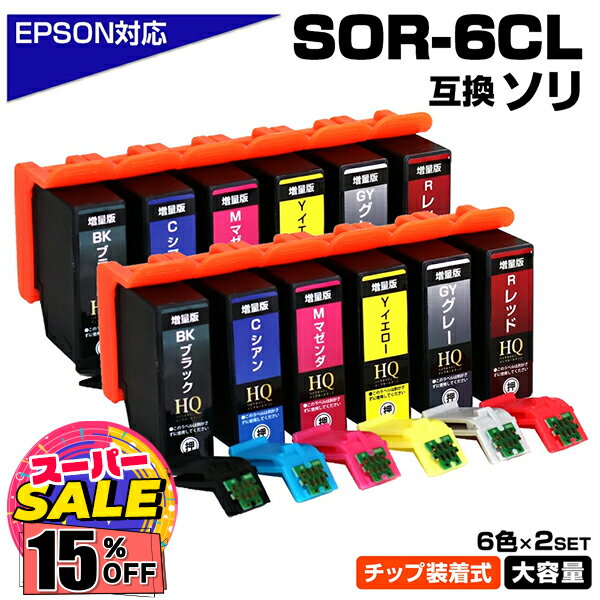【楽天スーパーSALE★15%OFF】SOR-6CL×2セット 6色パック×2 ソリ ICチップ装着式 互換インクカートリッジ EPSON エプソン用 epson互換 EP-50V 6色セット そり 互換インク エプソン用 epson エプソンプリンター SOR-BK SOR-C SOR-M SOR-Y SOR-R SOR-GY