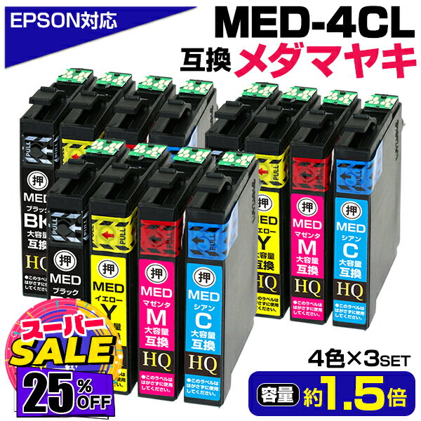 【楽天スーパーSALE★25%OFF】MED-4CL×3セット エプソン インク メダマヤキ 大容量 互換インクカートリッジ【4色×3パック】EPSONプリンター: EW-056A EW-456A MED-BK MED-C MED-M MED-Y med互換 メダマヤキ互換 ew-056a ew-456a【純正同等品質】