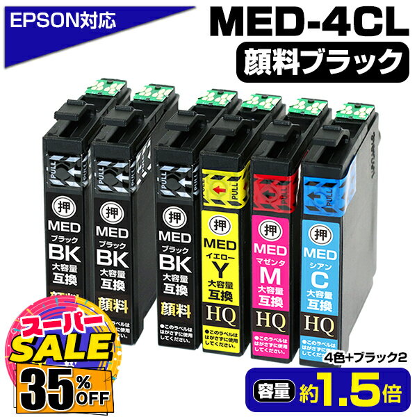 【楽天スーパーSALE★35%OFF】MED-4CL 4色パック(BK顔料+C/M/Y(染料))+BK2本(顔料) 【純正同等・顔料採用】エプソン メダマヤキ 互換大容量 互換インクカートリッジ med-4cl EPSONプリンター EW-056A EW-456A medインク med互換 顔料ブラック