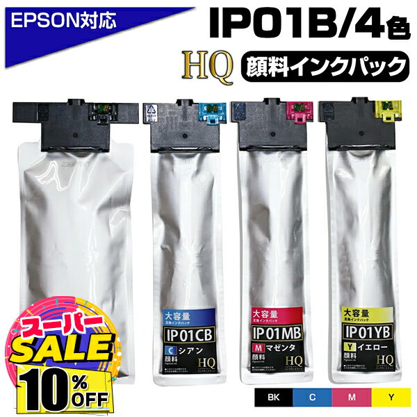 【楽天スーパーSALE☆10%OFF】【純正同等品質】IP01 IP01B 4色セット エプソン用【全色顔料】大容量版 ip01 互換インクパック IP01KB IP01CB IP01MB IP01YB 大容量 エプソンプリンター対応 HQ Ver.ハイクオリティ互換インクパック PX-S884 PX-M884F PX-S885 PX-M885F