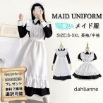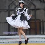 メイド服 レディース ワンピース 裾フリル Lolita 黒 白 大きいサイズ パフスリーブ コスプレ イベント 長袖 可愛い 萌え メイドカフェ ロリータ リボン ガーリ